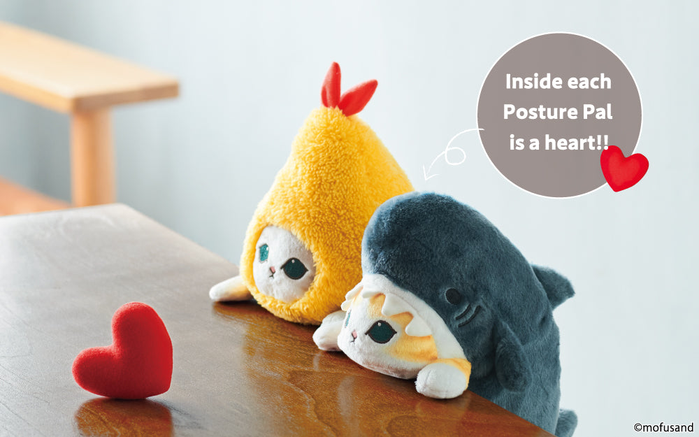 From mofusand. drawn by the popular illustrator Juno. Shark Meow and Shrimp Meow are now available as Posture Pals. stuffed animals that support and improve your posture.
