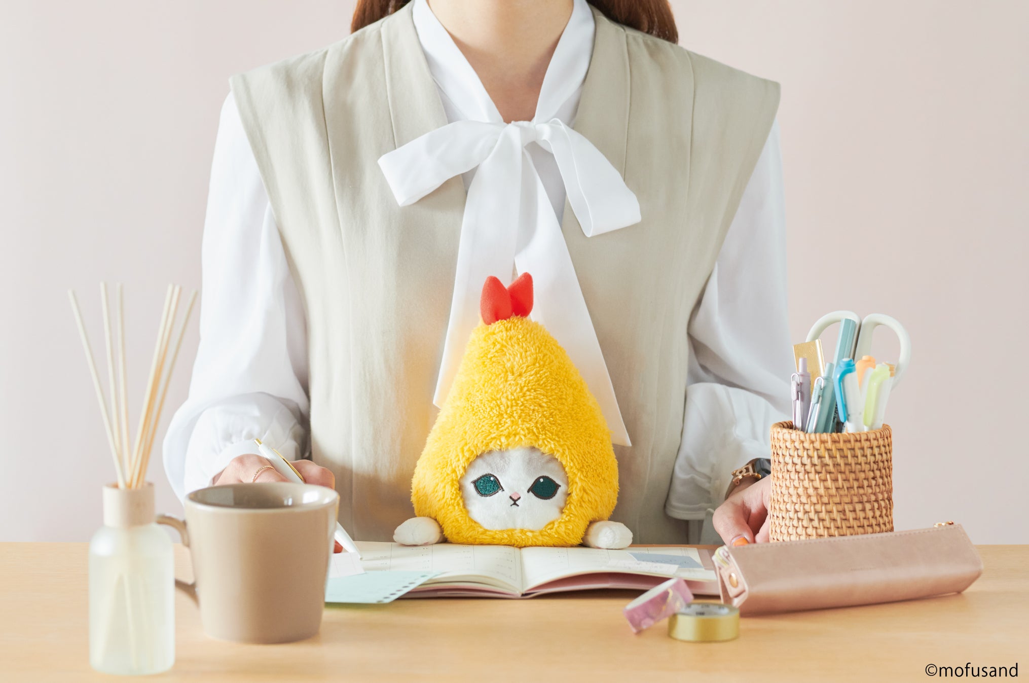 Put it in your business or tote bag and take it with you to the office or on the go. The cats from mofusand will help you fix your slouch wherever you are.